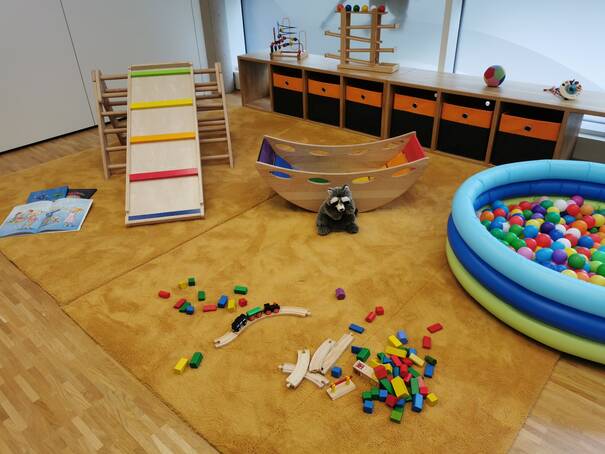 Gruppen- und Besprechungsraum können zu einem großen Raum verbunden werden.