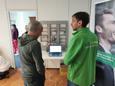 Der Stresspegel wurde gemessen, unsere Fitness getestet, wir haben Übungen gegen Rückenschmerzen gemacht, konnten einen Ernährungsvortrag besuchen und bei einem Workout zur Stress-Resilienz mitmachen.